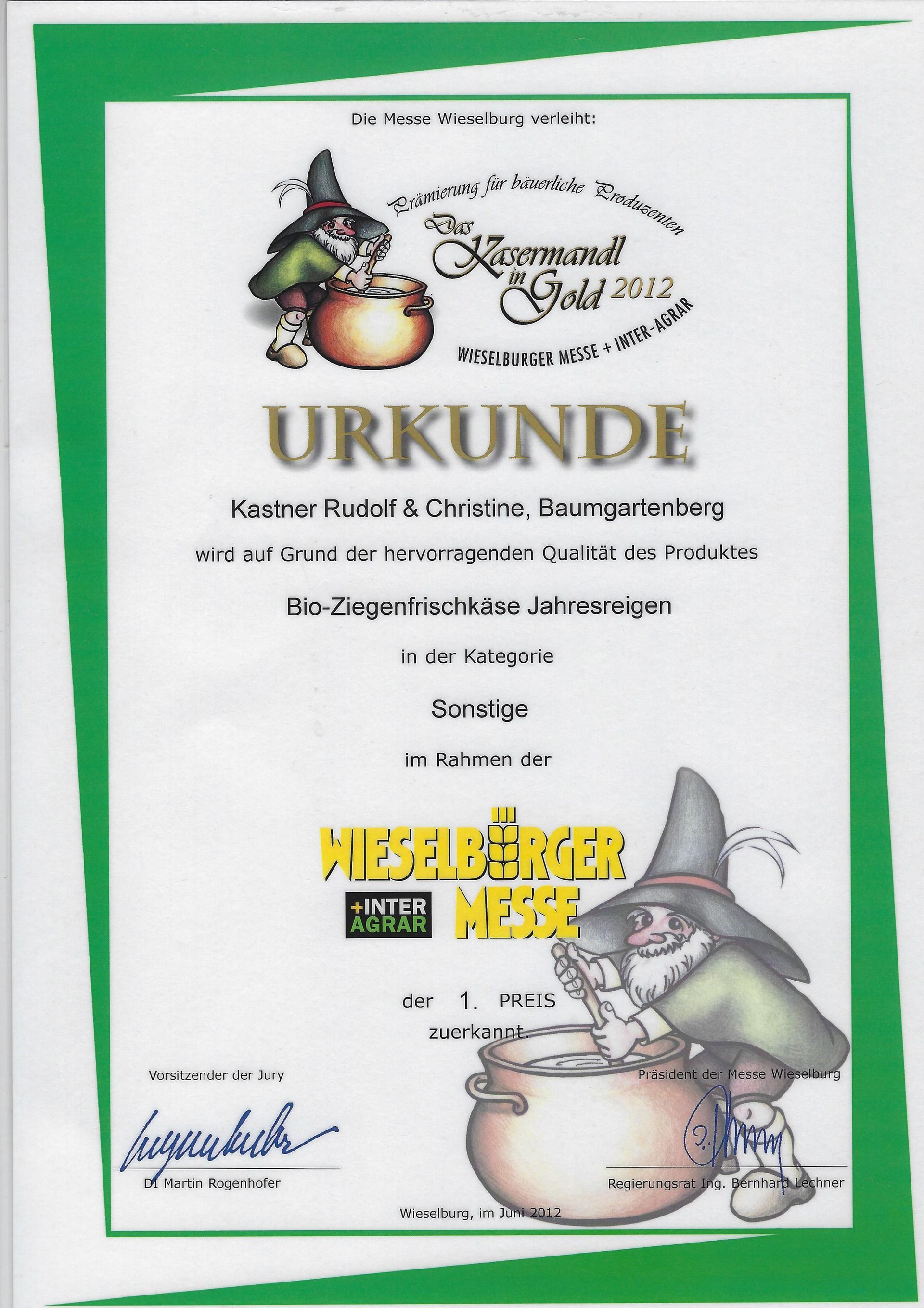 Auszeichnungen für unsere Ziegenkäseprodukte sind von großer Bedeutung, da sie nicht nur die hohe Qualität und den hervorragenden Geschmack unserer Erzeugnisse bestätigen, sondern auch unser Engagement für handwerkliche Perfektion und nachhaltige Produktion unterstreichen. Jede Auszeichnung ist ein Beweis dafür, dass unsere Käseprodukte höchsten Standards entsprechen und bei Experten und Konsumenten gleichermaßen Anerkennung finden.